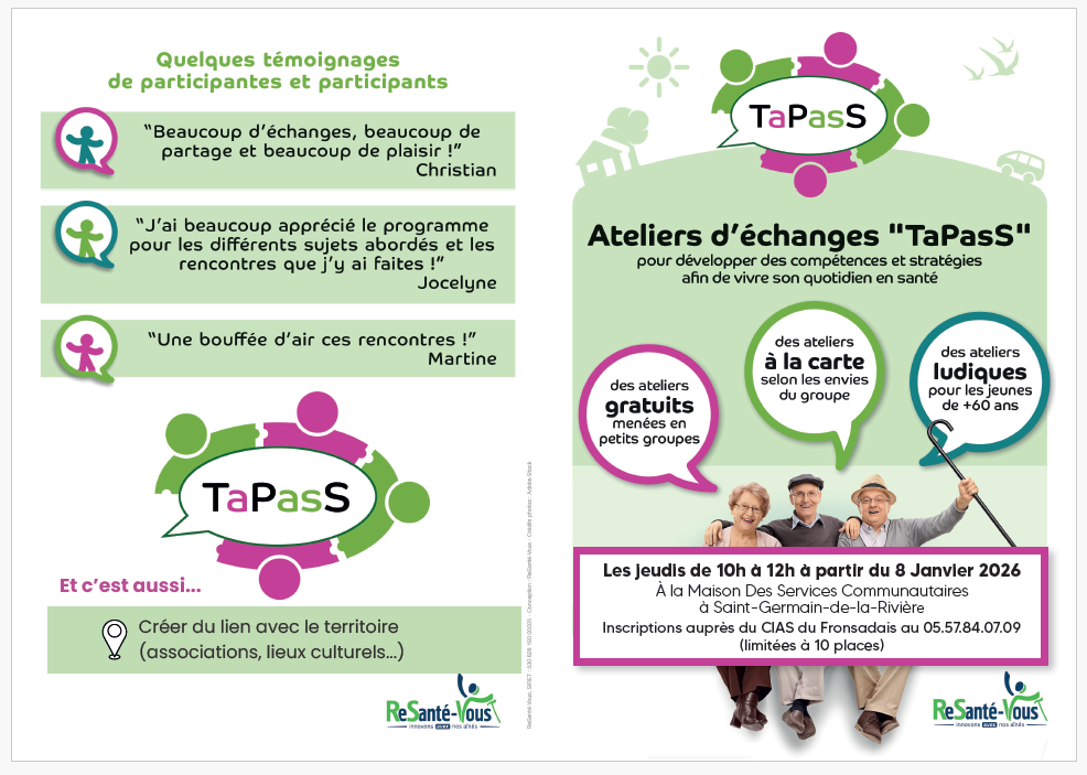 Ateliers TaPaSS pour les seniors du Fronsadais